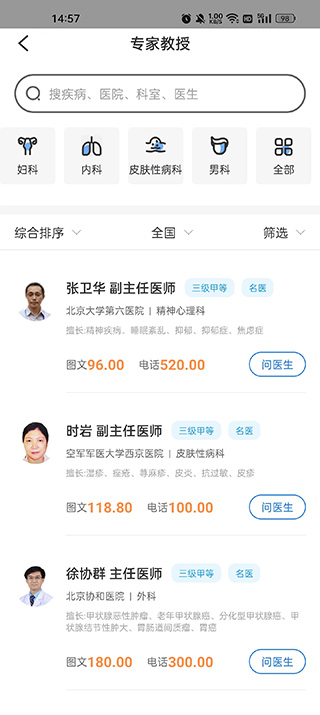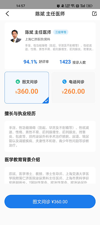 3、选择好医生之后,点击图文就诊或者电话问诊;