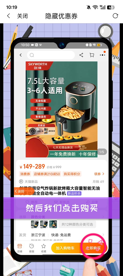 4、领完券之后,系统会自动跳转到购物平台,然后点击购买。