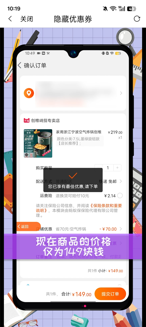 5、然后可以看到已经在原价的基础上使用了优惠券。