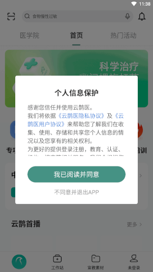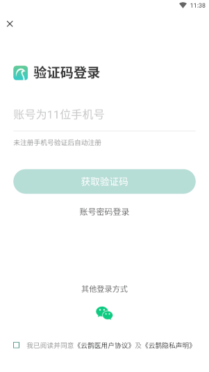 1、下载并安装打开云鹊医app,阅读协议自行选择是否同意。