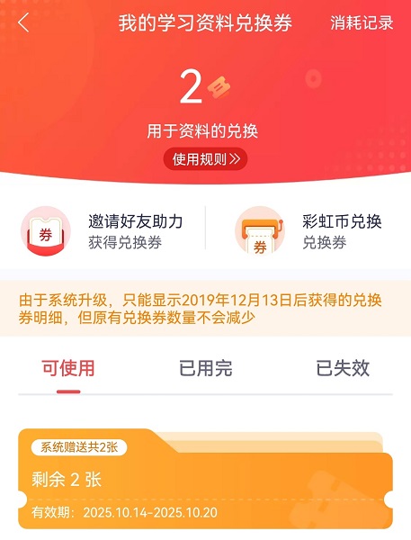 1、新用户登录会赠送两张学习资料兑换券,可在【我的】-【我的兑换券】内查看。