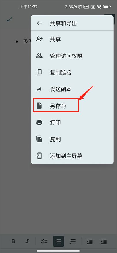 1、在页面选择“共享和导出”下拉菜单,然后就可以选择“另存为”功能。