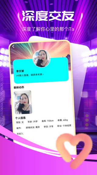 2、实时聊天 真实的聊天效果,可以让你详细了解对方的习性,交友更有保障。