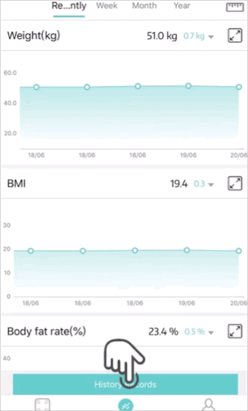 2、点击图表界面下面【历史记录】进入到历史数据的界面。