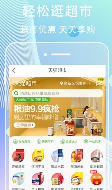 1、庞大的天猫超市平台让用户可以在网上浏览超市,方便他们日常购买日用品。