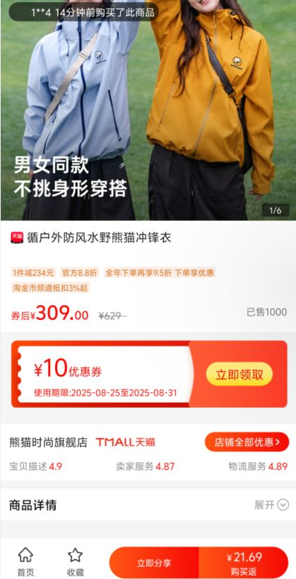 3、参与9块9购物活动,一键下单可包邮为你发货,享受超低价购物福利。