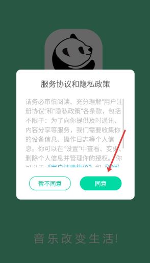 1、打开音乐熊软件,阅读服务协议和隐私政策后,点击同意,进入首页浏览精品课程选试听课学习。