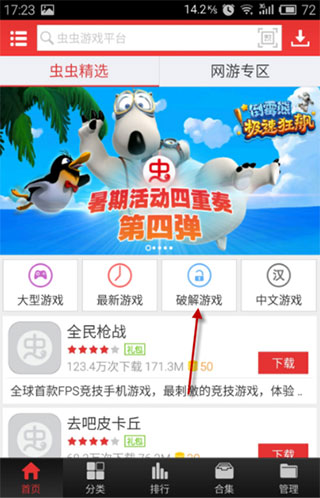 3、在虫虫助手下载有着大量的破解游戏,点击下载你想要的破解游戏,打开后就是破解版的呦。