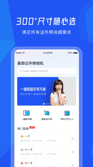 2、【100种规格】100种规格由你选择! 一寸照片、二寸照片、学生证照片、签证照片、试卷照片,满足证件照片所有尺寸的要求。