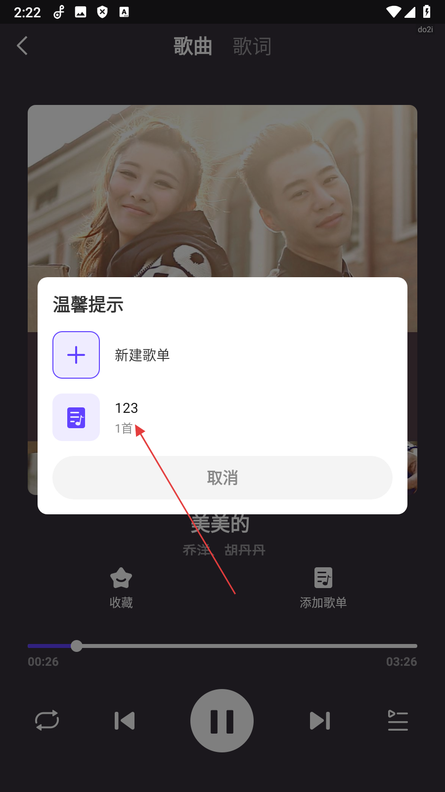 3、在温馨提示框中,点击【新建歌单】或选择已有歌单选项。