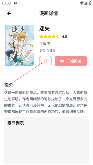 3、进入漫画详情页后,若想后续继续阅读该漫画,可点击【收藏】按钮进行标记。