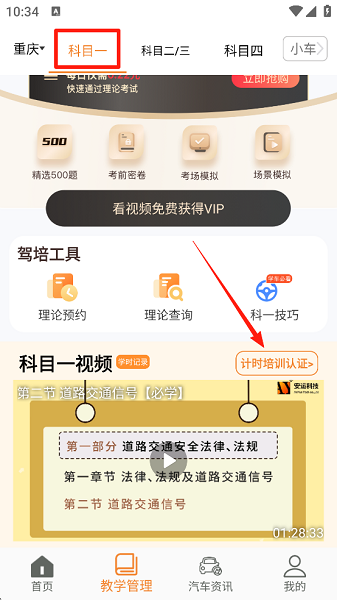 1、打开软件,注册登录好之后,选择科目一,在视频右上方点击认证。