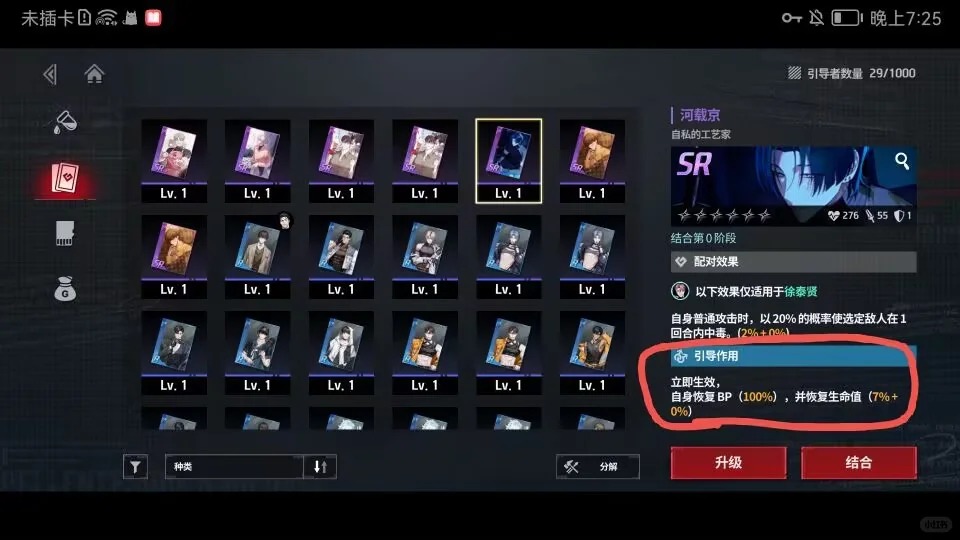 1、品阶与养成优先级:分SSR、SR两类,优先无脑养SSR(基础数值碾压SR,低10级仍有优势)。