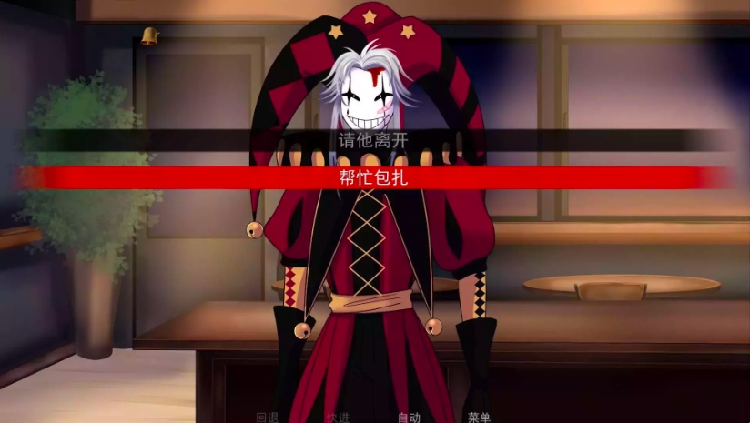 4、随后的选项中,“帮忙包扎”解锁的pierrot超可爱小表情,“请他离开”则是伤心表情。