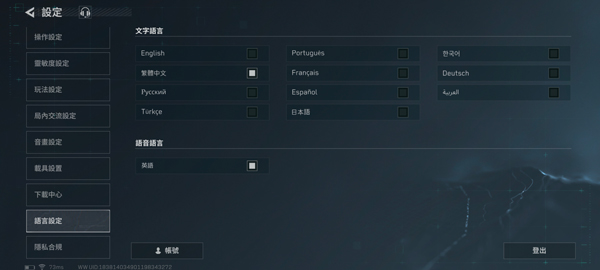 6、找到language,选择语言为繁体中文即可设置游戏语言为中文。