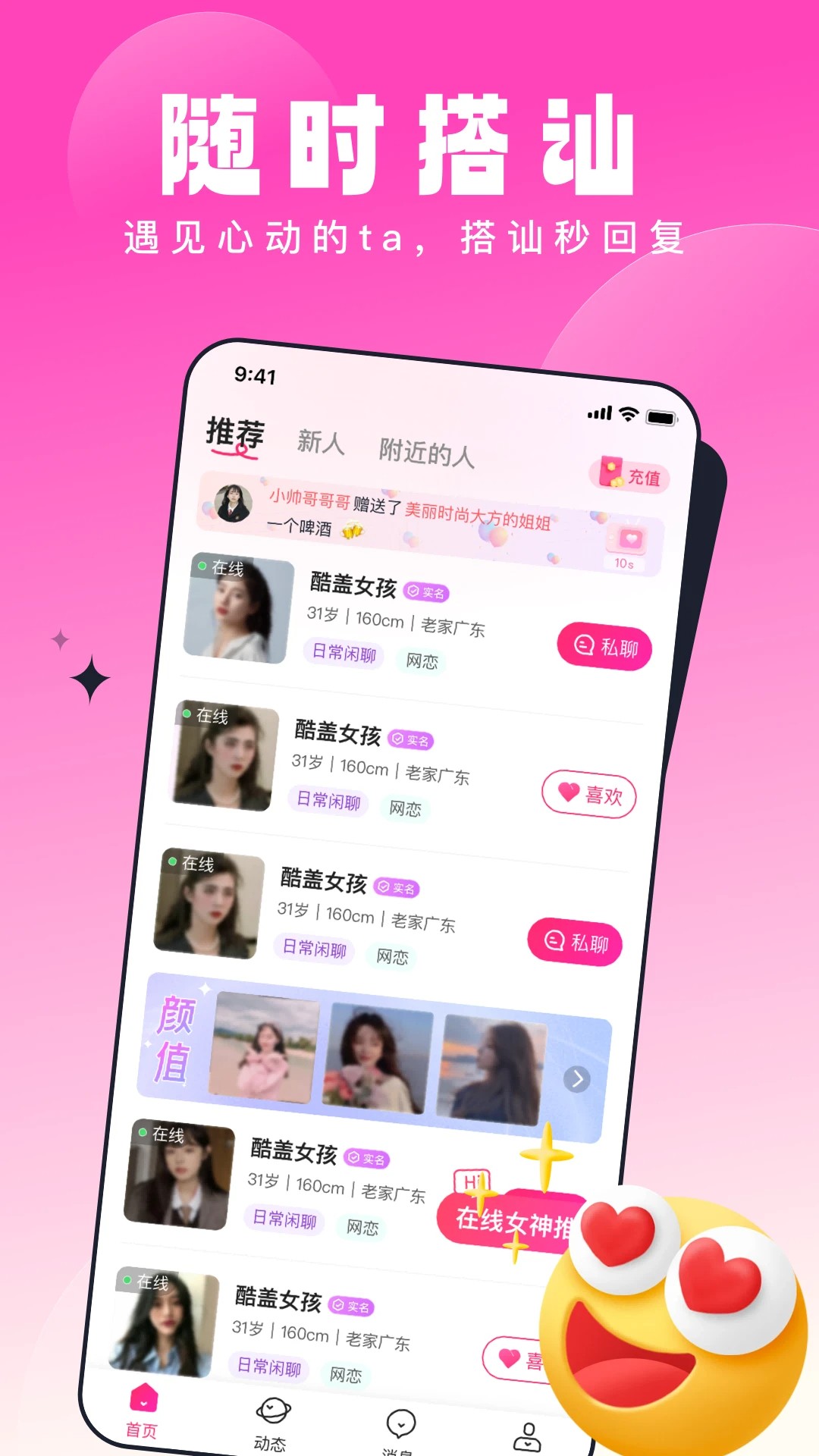 3、智能推荐:根据您的喜好和兴趣,为您推荐合适的朋友和内容。