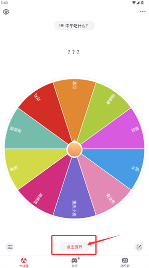 2、转盘生成后,轻触底部旋转按钮即可启动转盘随机选择功能。