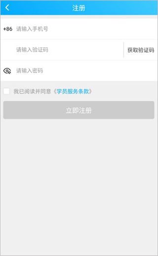 2、进入注册页面,输入手机号,获取动态验证码,设置密码等信息注册。