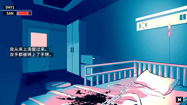 7、点击字幕就可以推进游戏,我们现在被锁在了床上。