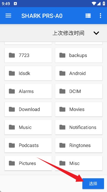 4、请勿选择"support"文件夹,而是其父文件夹注:有可能需要开启「显示内部储存空间」选项。