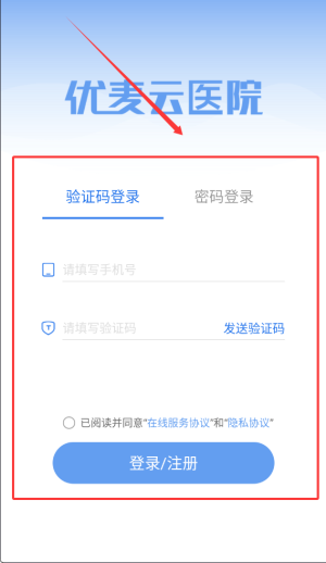 1、确认服务协议后进入应用主界面,开启医疗服务平台完整使用流程。