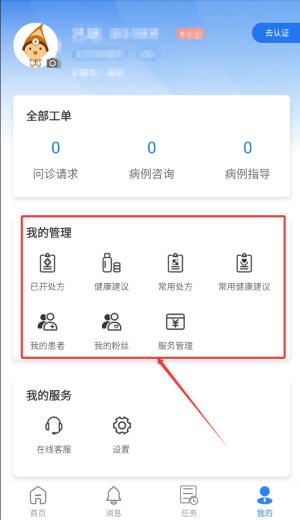 4、个人中心设有处方记账、健康指导方案、常用处方模板及患者管理等功能模块。