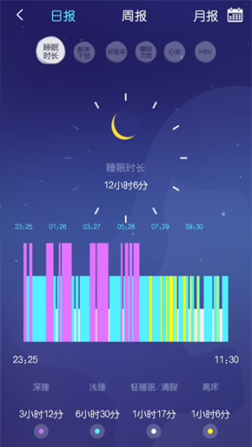 4、实时记录睡眠质量数据,通过深睡时长与翻身次数等图表助力作息优化。