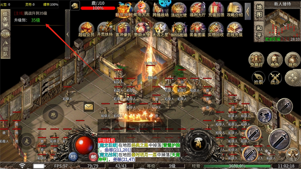 3、开启战斗模式角色会自己出发砍怪提升等级。