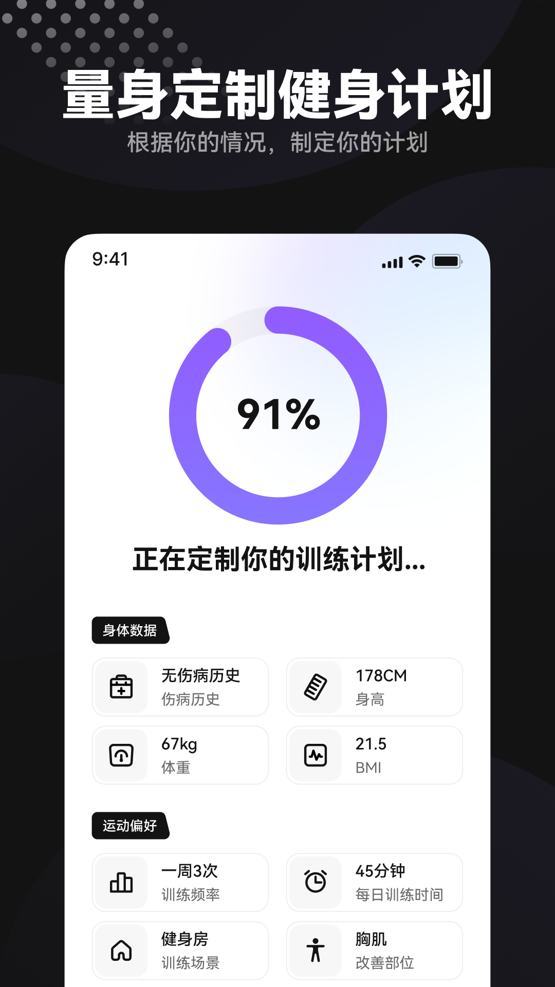 2、个性化训练计划:根据用户的身体状况和运动目标,为用户量身定制个性化训练计划,帮助用户科学锻炼。