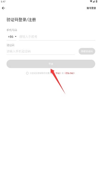 2、在登录页面输入个人手机号码及接收到的短信验证码,完成验证后进入首页。
