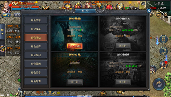 4、点击帮会活动,参加活动可以获得大量奖励和帮贡。