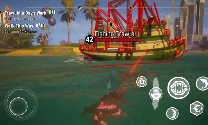 扮演巨型牛鲨并恐吓沿海水道。 从肢体上撕下游泳者和潜水员的肢体,给人类一个恐惧你的理由。