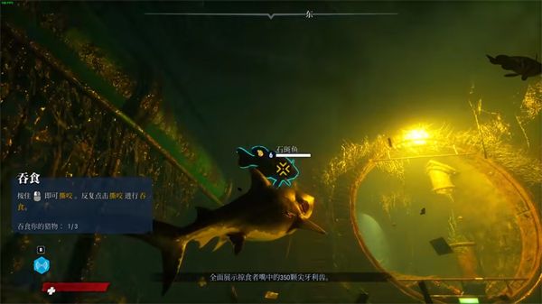 5、w键,主角扮演的鲨鱼可以向前方移动。
