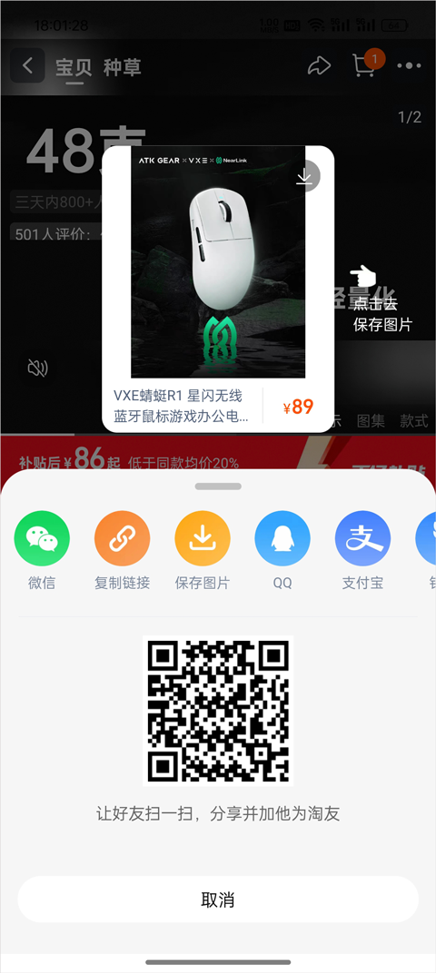 1、在逛淘宝时遇见喜欢的宝贝,在淘宝上点击「分享」,然后「复制链接」。