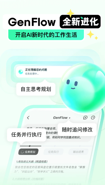 百度文库GenFlow3.0重磅更新!全端通用智能体,你的超级AI助理来啦——PPT、研报、绘本、代码、海报、图表等多模态结果分钟级交付!新增【AI博客生成】音频故事在线播放,支持随时暂停对话。AI视频生成一句话创作趣味视频,风格多变有趣。记忆中心熟记你的个人喜好,自主调用记忆信息,成为最懂你的私人助理~感兴趣的朋友不要错过下载。