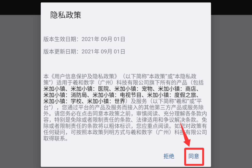 1、打开游戏后会提示隐私,点击隐私政策里的同意并继续。