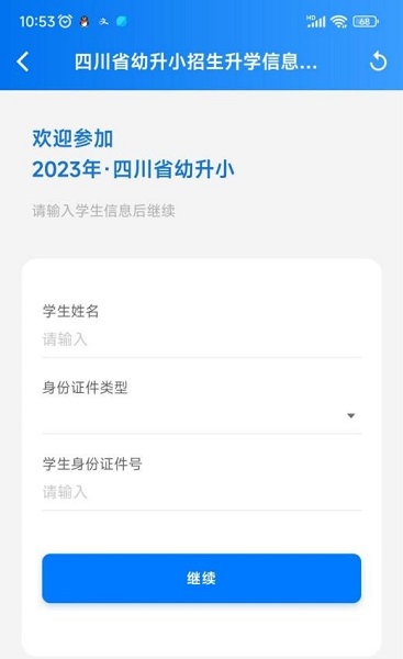 2、第一步:输入学生真实姓名、选择身份证件类型(居民身份证)、输入学生真实身份证件号。如图所示。