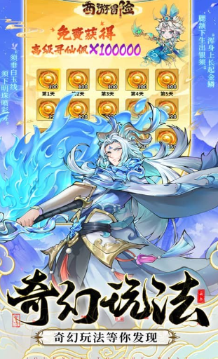 1、【100000抽】 每天登录即可免费领取高级寻仙佩,共赠送10万抽。