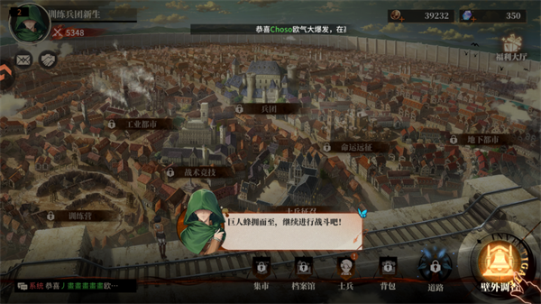 3、剧情彩蛋沉浸探索:调查兵团总部宿舍、训练场等场景暗藏彩蛋,日常任务解锁隐藏剧情与角色互动。