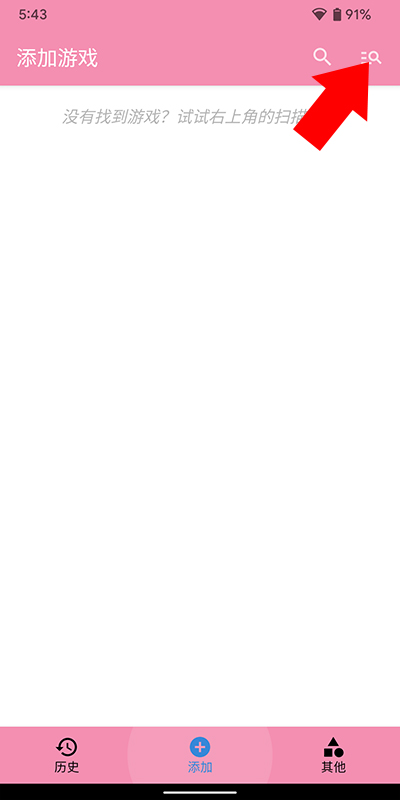 1、首次打开应用会申请存储空间权限,给予权限后来到下方界面,接着教大家添加游戏。