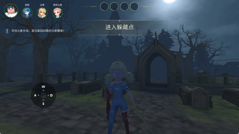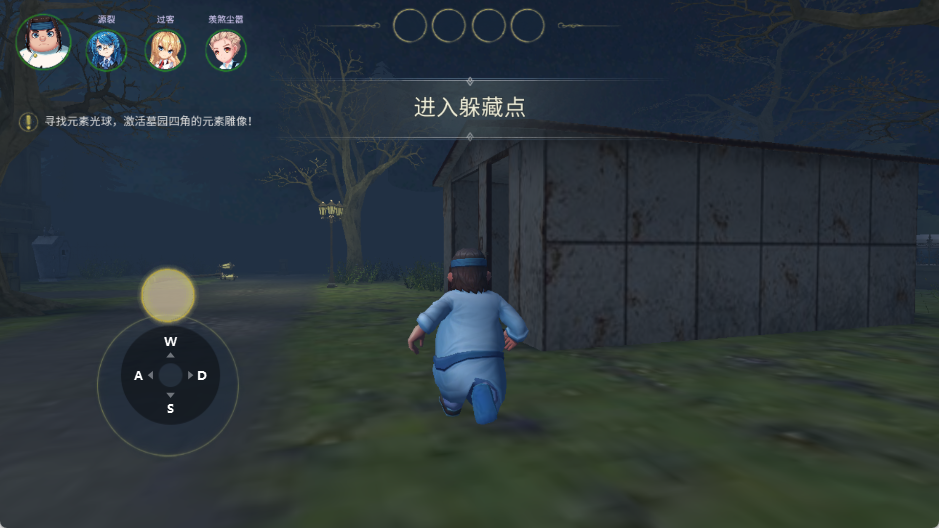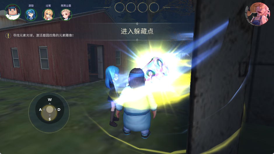 1、进入游戏快速搜集元素球,记住地图转角、柜子、阴影藏点,分散行动,不要扎堆送死。