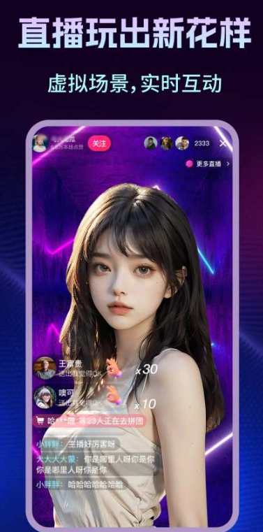 2、进入应用后,一键开启虚拟直播模式,帮助您高效推广和销售产品。
