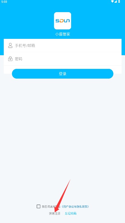 2、在登录界面选择快速注册功能选项按钮,系统将自动跳转至账户创建信息填写页面。