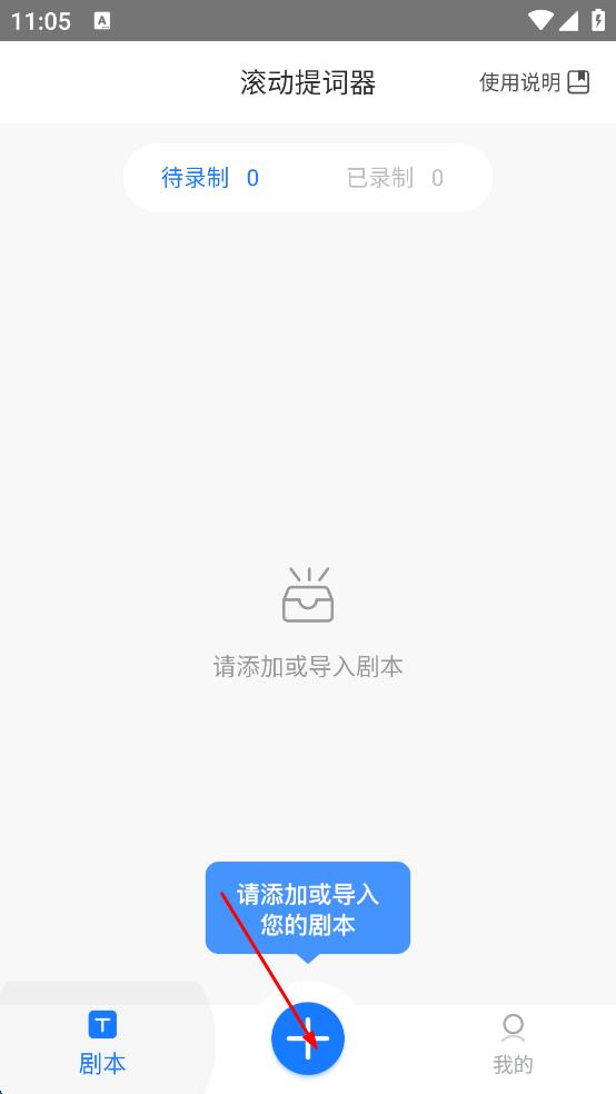 2、在主界面,点击下方带加号的圆形按钮,进入添加剧本页面。