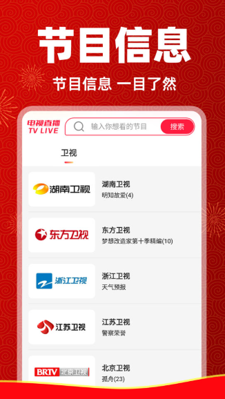 电视直播免费管家app是一款可以免费看全国电视直播的软件。让众多喜欢电视直播的用户能够获得关于中央电视台、卫星电视台、地方卫星电视台等节目的非常详细的信息。在这里,你可以得到不同的节目内容。在未来,用户可以关注自己感兴趣的节目更新,也可以了解更多的节目信息,让你掌握更多重要的节目内容!用户可以通过本软件获取最新的电视节目预览、节目内容和节目搜索等功能,满足用户的观看需求,软件界面简单,操作方便。