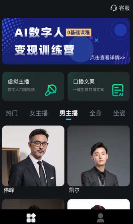 5、进入首页后可以看到虚拟主播和口播文案两大功能版块。