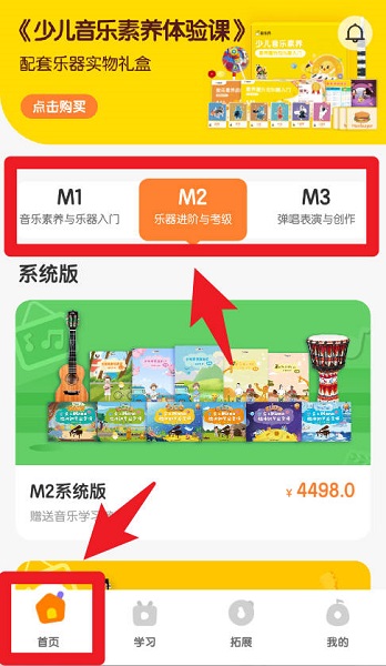 3、在拓展板块,用户可以进入学习工具、趣味训练营和音乐资讯等功能区,丰富孩子的音乐学习方式。