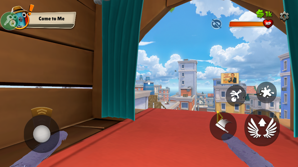 2、进入游戏,通过拖动左下角操纵杆来控制角色的移动方向;点击右下角翅膀图标,可以让角色飞起来。