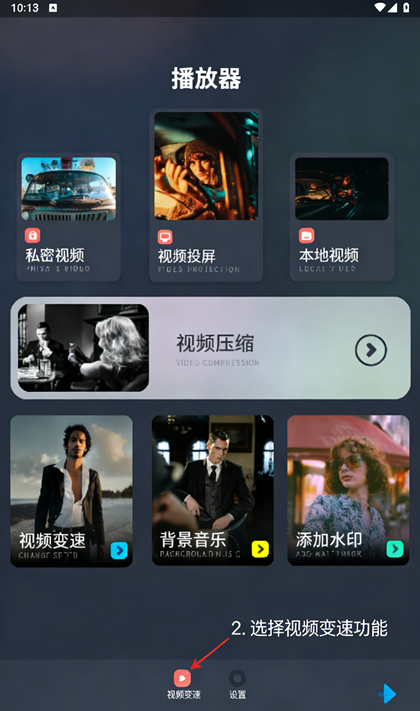 1、打开播放器软件,首页展示私密视频、视频投屏、本地视频等功能模块,可根据需求选择对应入口。