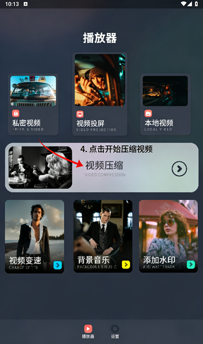 2、进入视频压缩功能界面,界面中显示 “视频压缩” 字样及对应图标,可在此处选择需要压缩的视频文件。